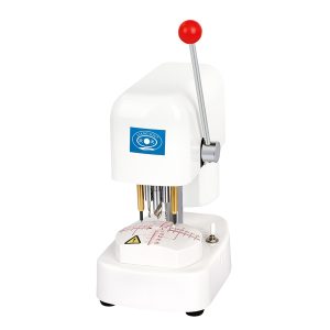 Before processing lenses in an eyeglass shop, the lining of the frame is used to draw the pupil height line and pupil distance, and then three holes are drilled to replace the template and directly install it on the edging machine.